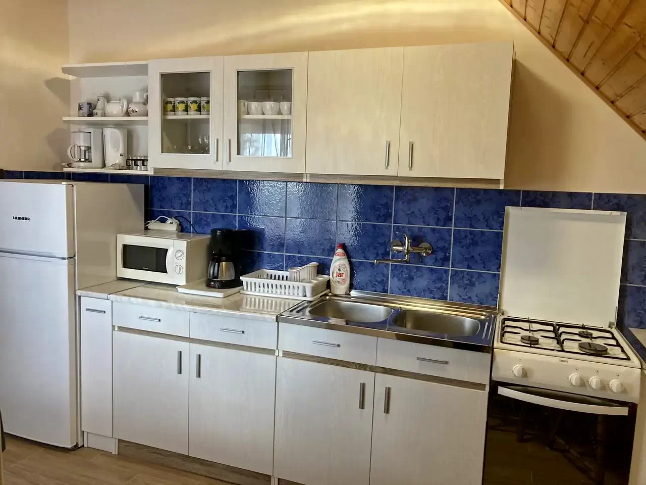 In apartament avem 2 dormitoare (3-3 paturi), 2 băi și o bucătărie complet echipată așteaptî pe oaspeți. La nevoie putem caza încă 3 persoane la camera de zi. De la terasă puteți savura panorama spre Heviz. În curte avem loc de parcare, loc pentru grătar.
