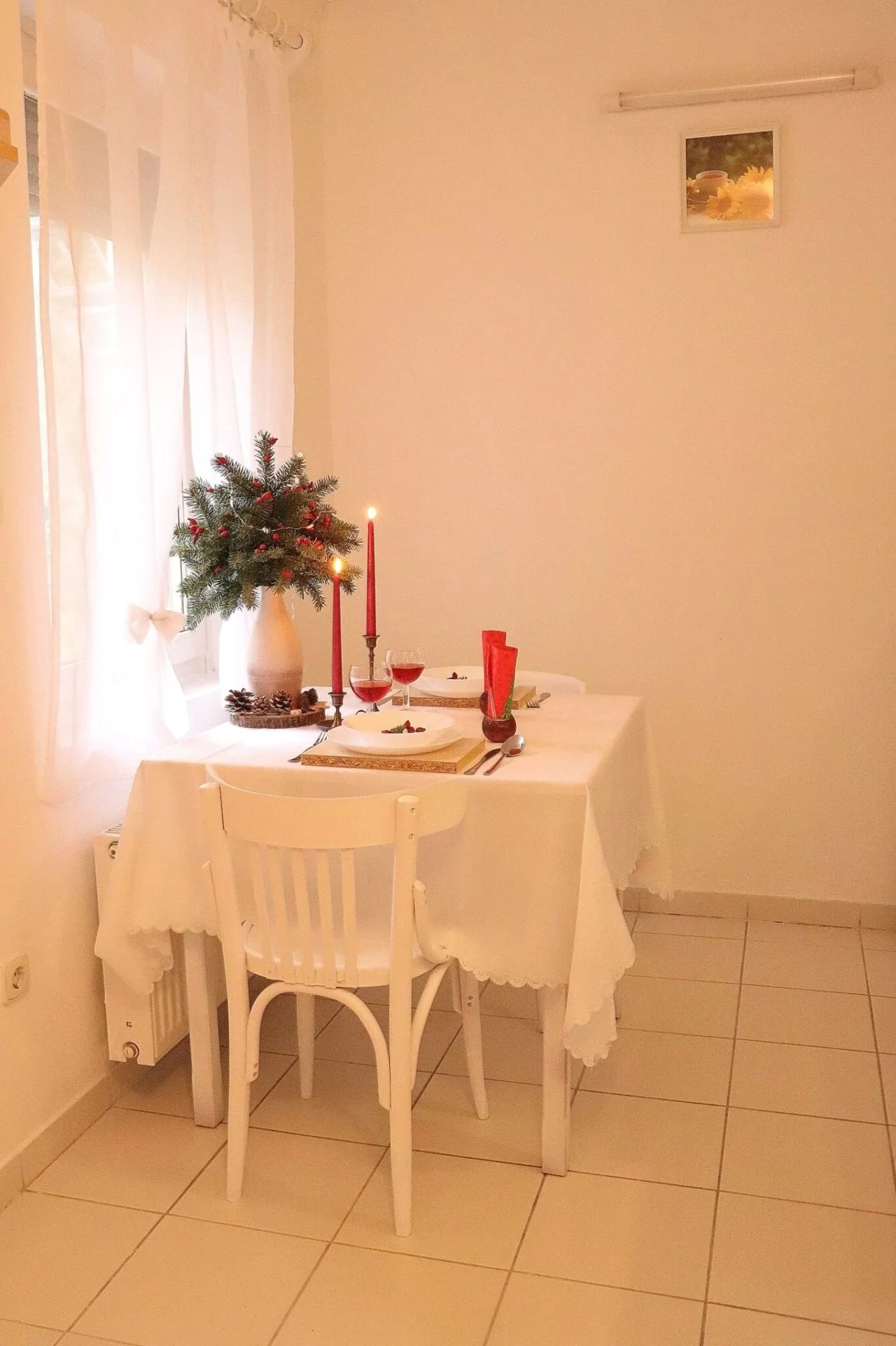 Apartamentul etaj are 2 camere, baie, bucătărie bune echipată și terasă. Camerele pot găzdui 3 sau 4 parsoane. Ambele camere au TV. Asigurăm lenjerie de pat.