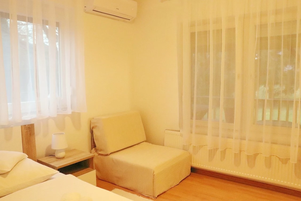 Apartamentele sunt ideale pentru 2-3 familii pentru a organiza timpul liber împreună. În grădina amenajată avem vegetație bogată, filegorie, mobilier de grădină, hamac, lac cu fântână, totul Vă ajută la o relaxare mai profundă. În grădină aveți loc de parcare, dar și colț pentru gătitul în ceaun sau la grătar. Cumpărăturile zilnice puteți să faceți la magazinul din apropiere, dar și mesele pot fi rezolvate la restaurantul din apropiere.