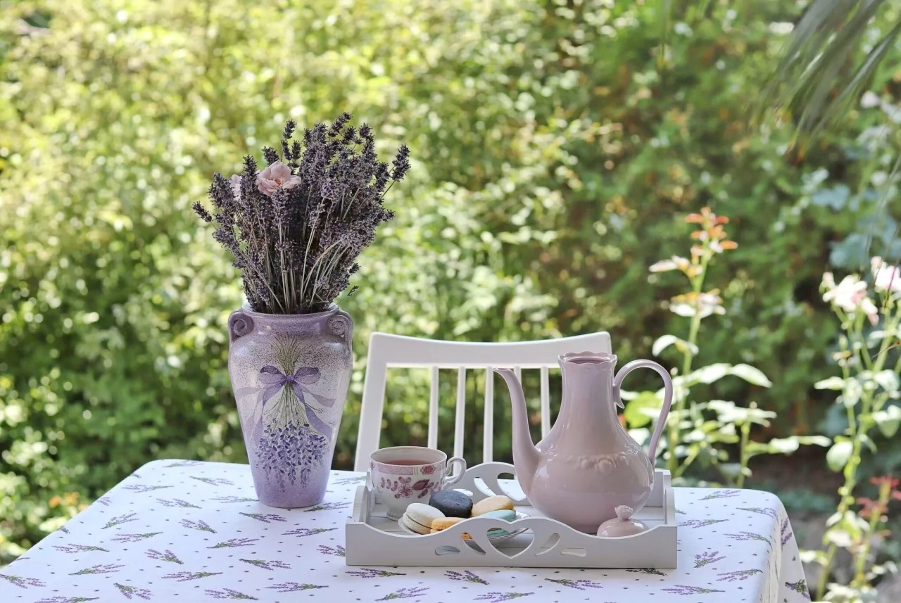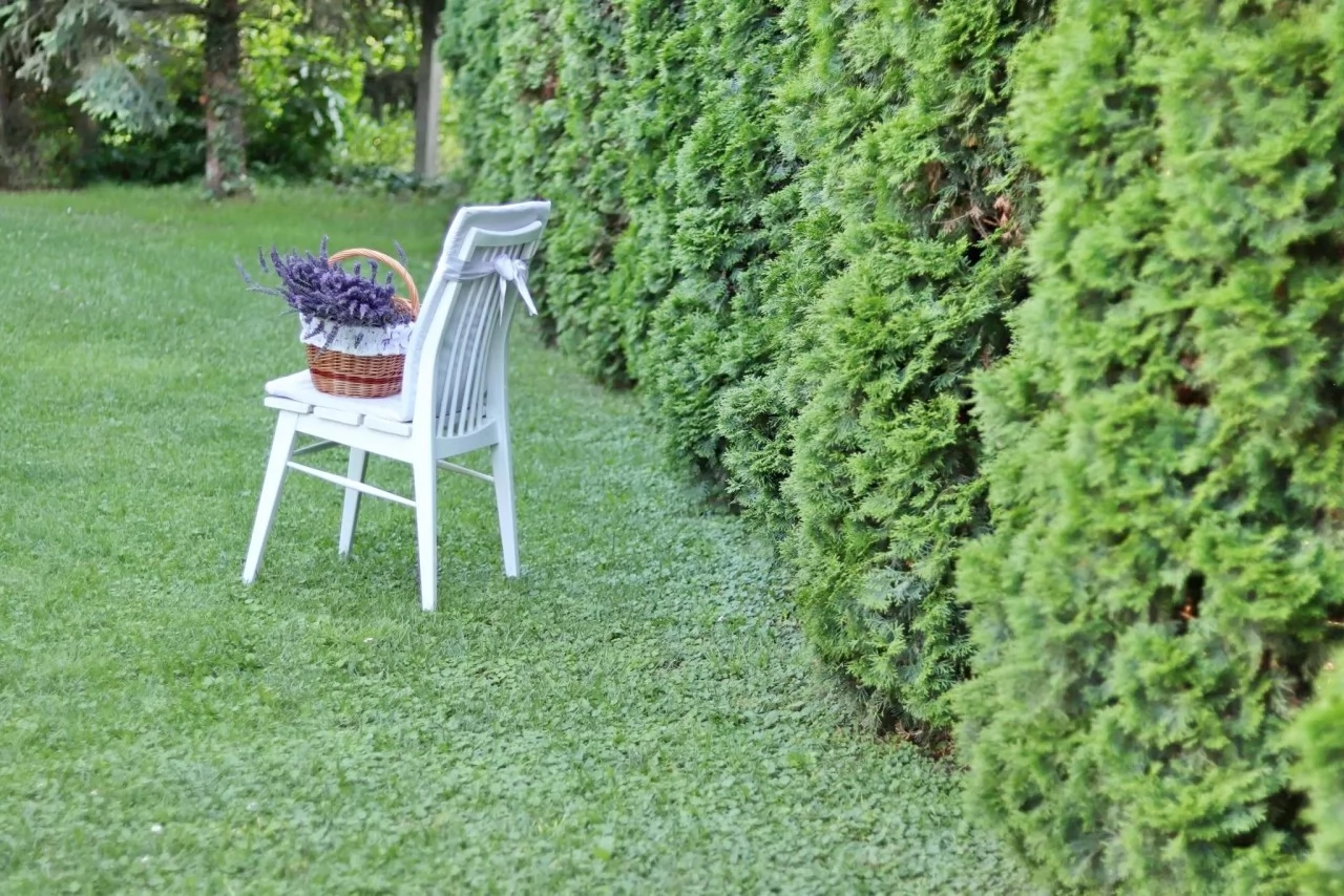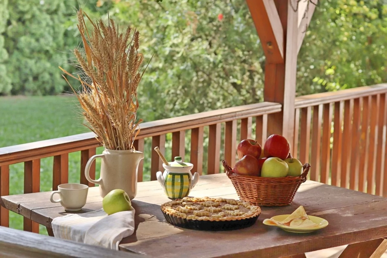 La terasă avem mobilier de grădină pentru a servi relaxarea.